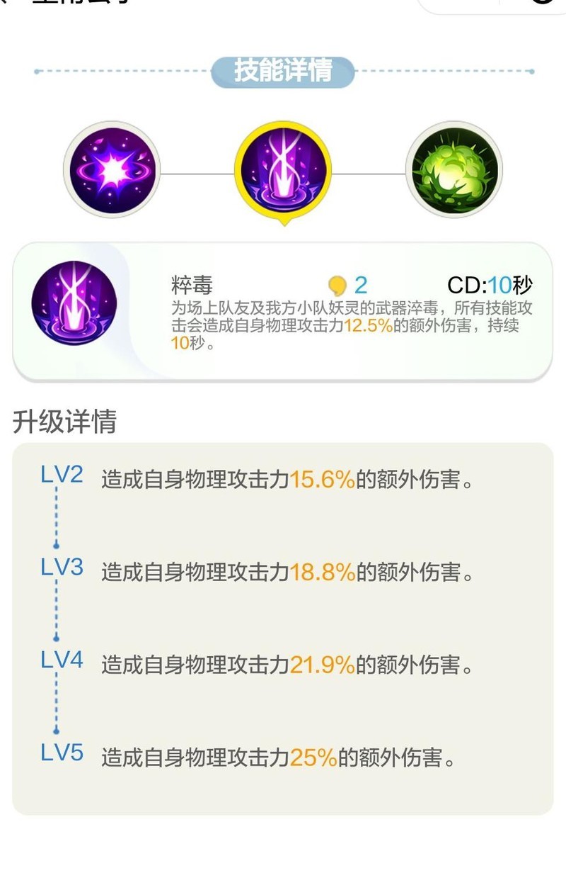二技能粹毒可使所有技能攻击附加相当于施法者25%攻击力的额外伤害。需注意:该效果仅限技能攻击触发,普通攻击无法享受此加成。此外,若将此增益状态施加于队友,其技能攻击不仅能造成附加伤害,还可为一技能猛毒叠加层数。尽管官方说明中提及伤害基于皇甫自身攻击力计算,但实际测试表明,该伤害加成是依据被施加buff单位自身的物理攻击力来判定的,详细测试数据将在后续展示。