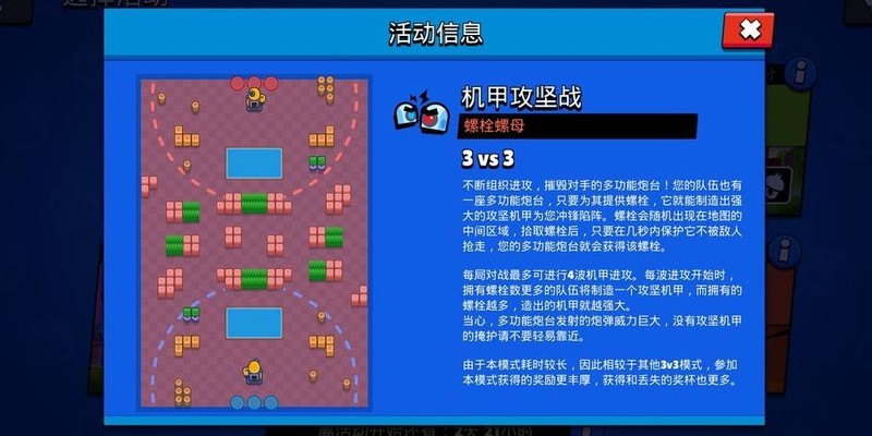 屏幕下方可选择活动模式并进入战斗。只要对战按钮上方显示有剩余奖章,每次胜利都能获得数十枚。累计赢得一百枚奖章,即可开启一个小型宝箱,这是获取新英雄和金币的重要方式之一。玩家可根据喜好自由选择活动内容,除限时活动外,日常活动共分为四种模式,每种带来独特玩法体验。各类活动每日轮换,每隔六小时依次刷新一次。每当新模式刚开启时,首次获胜还可额外领取一枚胜利奖章。收集满十枚胜利奖章后,便能解锁一个大型宝箱,获得更丰厚的奖励。