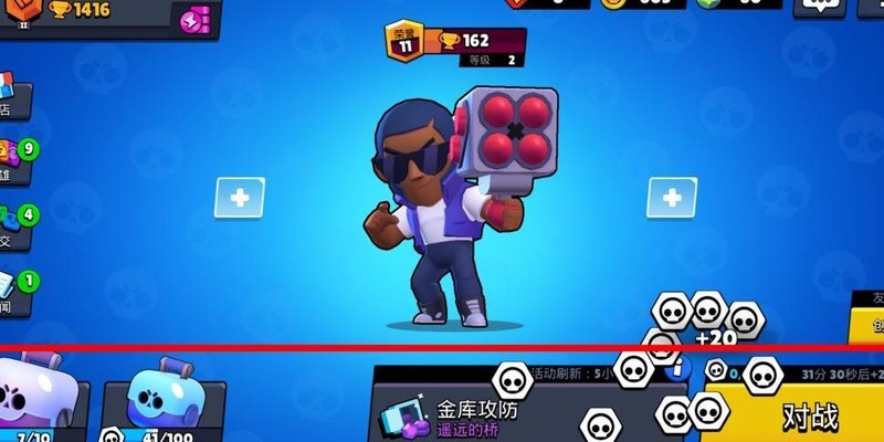 左上角显示你的游戏昵称和奖杯总数,中间区域展示你所选英雄、英雄等级及该英雄的奖杯数。与其他游戏不同,本游戏的匹配机制依据的是当前使用英雄的奖杯数,而非玩家总奖杯数。这一设计使对战更贴近实际操作水平,英雄奖杯反映玩家在该角色上的实战能力,而总奖杯则体现整体游戏经验和综合实力。
