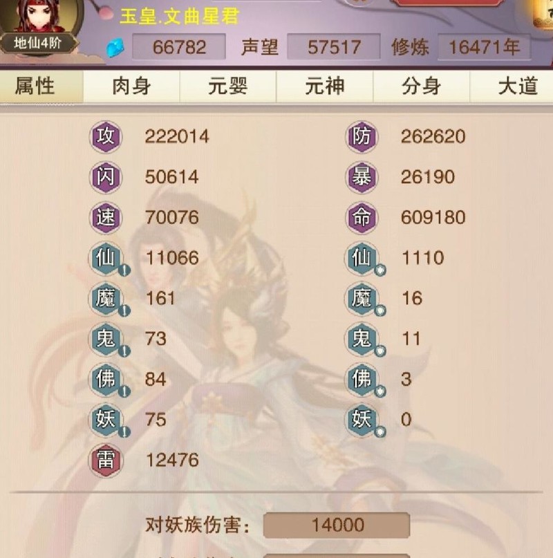 妖族攻击1.4万,鬼族1.3万,特攻1.12万,犬族达1.53万。