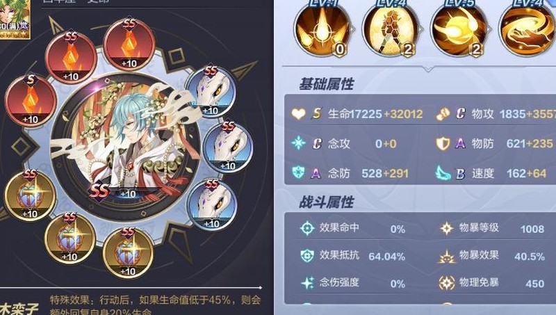 木栾子与史昂的搭配堪称绝配,二者相辅相成,形成极具压制力的战斗体系。木栾子可在生命消耗后触发回血机制,而史昂本身具备高额的生命值和双防属性,生存能力极强,完美契合该机制。高生命与防御基础使其更易堆叠效果抵抗,配合会心属性可达到60%以上的抵抗率,极大降低被控制的风险。作为物理输出角色,史昂还能通过顽类属性大幅提升物理暴击等级,突破千点的物暴让其伤害极为恐怖。最终成型的史昂拥有超过10万气血,双防突破800,再穿上水晶圣衣,一记星屑旋转功便能打出毁天灭地的伤害,令对手毫无招架之力,堪称版本顶尖的强力斗士。