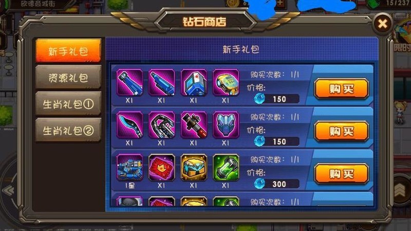 钻石商店可购新手、资源及生肖礼包,建议前期优先积攒钻石,谨慎消费,特殊情况除外。