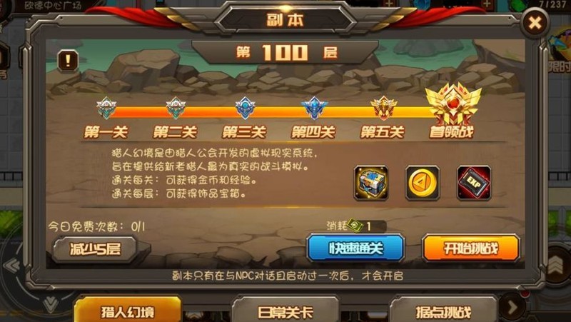 猎人幻境副本目前最高可达100层,每层设有六个小关卡,全部通关后可领取一个宝箱。宝箱有概率开出饰品碎片,饰品按品质分为金、紫、蓝、绿四个等级,等级越高属性越强。每日可通过重置机制降低当前层数5层,并使用扫荡券免费领取5个对应层级的宝箱奖励,建议每日坚持完成,轻松获取资源,切勿浪费免费福利。目前重置券仅通过充值途径获得,希望后续能增加更多获取方式,感谢策划团队的辛勤付出。据最新消息,1.48版本将把副本上限扩展至150层,且从第101层起,幻境宝箱将有机会掉落战车配件,提升战力的新途径即将到来。