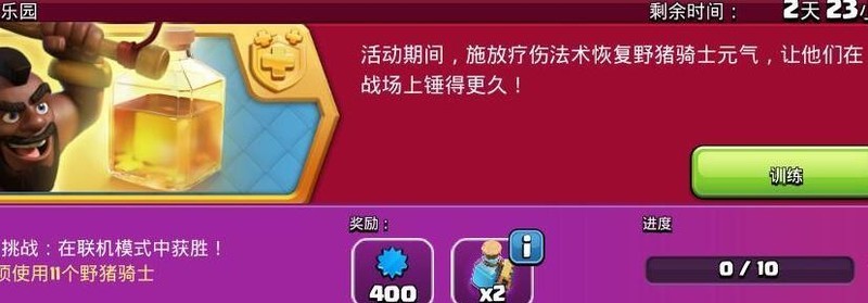 平时采集资源时,可搭配适量野猪骑士和治疗法术,轻松推进任务进度。若想更快完成,可在2800杯以下段位寻找外置大本营,利用国王配合野猪与治疗法术集中进攻,迅速摧毁主基地。高效便捷,事半功倍。立即上线参与活动,挑战目标,赢取丰厚奖励,精彩不容错过!