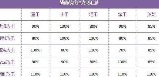 新手常误以为某些兵种过于强大、近乎无敌,其实这种想法并不正确。游戏中并不存在真正无敌的兵种,这一点必须明确。兵种之间的克制主要分为攻击克制和技能克制两类。其中,攻击克制关系我已整理成表格,直观清晰,便于理解。而技能方面的克制较为复杂,涉及多方面因素,我们将在后续内容中详细解析。