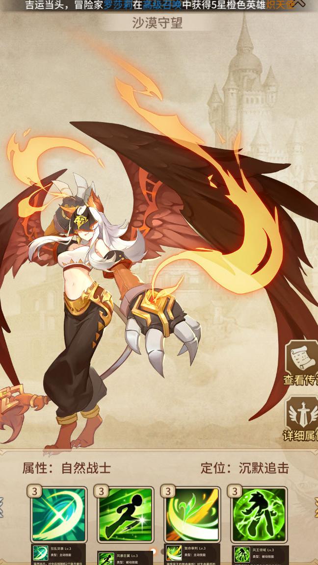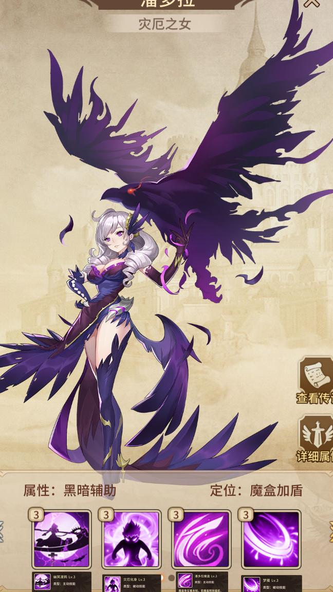 提升全队闪避、抗暴与速度属性,达到指定技能等级后,可降低敌方命中率,并随机使两名己方英雄获得伤害加深效果,适合闪避流派搭配使用。