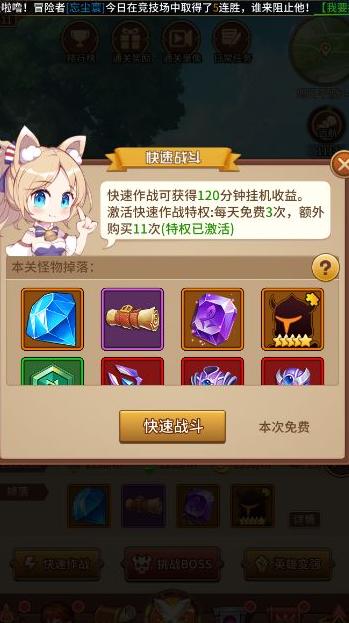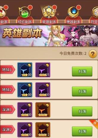 经验副本每日可挑战两次,英雄缺经验时可用钻石扫荡。平时留意冒险和精灵商店,用金币购买英雄经验道具以提升效率。