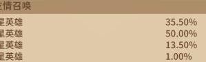 五星英雄获取概率为5%,碎片为20%;四星英雄获取概率为35%,碎片为40%。