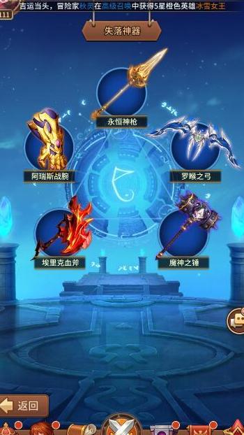 每个阵容可装备一件神器,满足解锁条件即可激活,不同等级的神器拥有独特技能效果,玩家可根据策略自由搭配阵容。