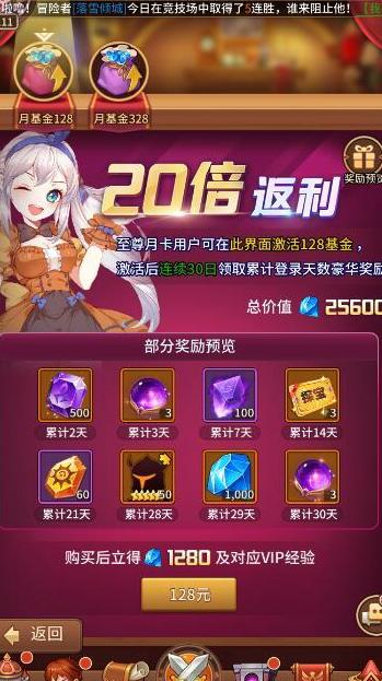 低V玩家建议优先购买成长基金,作为长期获取大量钻石的主要途径,同时入手超值快速作战礼包。此举可顺带激活双月卡,稳定获得日常钻石收益,还能解锁V3积分召唤权益,并获取雅典娜角色与四星橙色装备,助力新服起步。坚持每日投入6元参与15天累充活动即可。