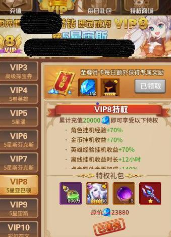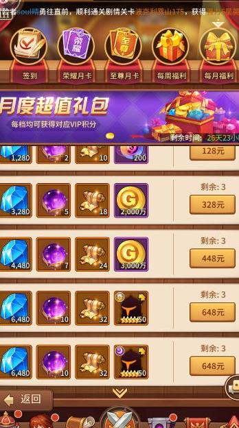 不同VIP等级享有专属礼包,可用钻石购买,实惠又超值。