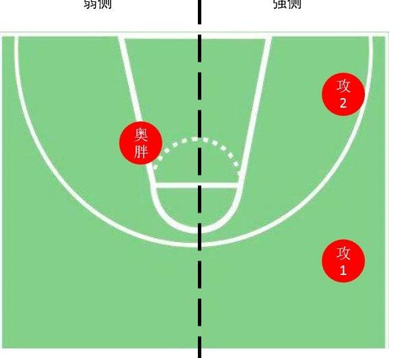 这个位置或与其等距的环形区域具备多项战术优势:首先,普通投篮仍被判定为内线出手,不仅有助于提升投篮评分以争取金杯评价,即便遭遇干扰,也能轻松完成A级投篮;其次,该区域处于冲扣的有效范围内,一旦对方防守者与奥尼尔之间稍有空隙,接球后可立即启动完成强力扣篮;再者,只需向外移动一两步,便能迅速为队友设立高质量挡拆,增强团队协作能力。此外,由于奥尼尔本身存在被断球的风险,因此站位时应优先选择球场的弱侧——即对方防守力量较薄弱的一侧,这样即使对手试图协防抢断,也需要更长时间才能到位,提升了持球安全性。所谓强弱侧,简单而言,是指进攻方和防守方人员分布较少的一边为弱侧,反之则为强侧。即便奥尼尔在该位置遭到对方中锋紧贴防守,他依然能通过一到两步的背身单打深入禁区发起攻击,同时为擅长突破的队友保留内线空间,实现个人得分与团队配合的双重效果。