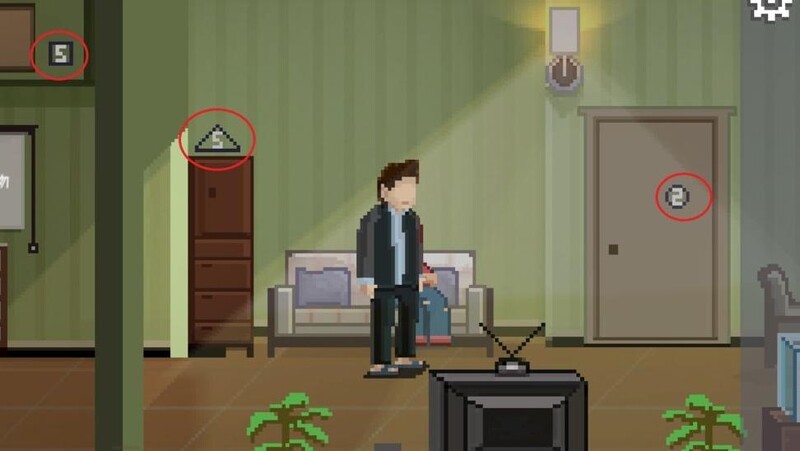 进入书房,点击电脑旁的乐谱,放入音符片段复原后得提示□=3;用钢丝修好吉他,获得线索○=2。