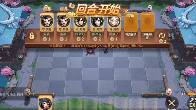 等级越高,棋盘可部署的麻将棋数量越多,最高9级时可上场10个。每回合自动获得1点经验,也可花费5金币购买5点经验,加速升级进程,抢占先机。