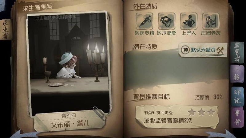 艾米丽是第五人格中新手常用的求生者,拥有游戏中唯一的初始自愈技能。