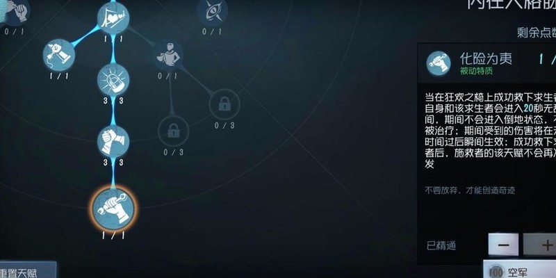 救人时建议携带天赋搏命挣扎,即天赋树底部的大技能,可为自身和队友提供20秒无敌状态,期间无法被击倒,争取宝贵救援时间。20秒结束后若仍处于危险中才会触发倒地效果(详情见游戏内设定)。非空军角色救人时强烈推荐此天赋,必须主动抗刀,否则不仅救不了人,反而会加速队友淘汰,尤其在求生者椅子血量过半后贸然救援将直接被淘汰。