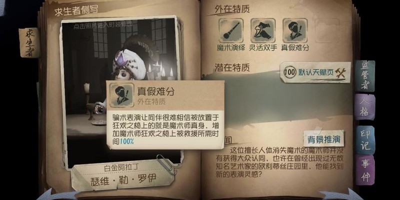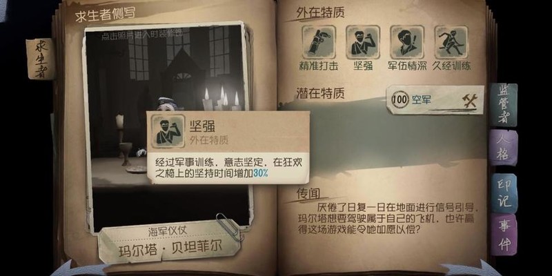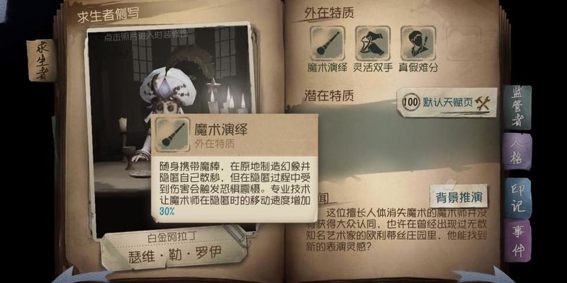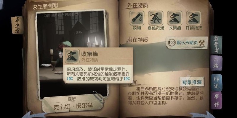 苟到最后型:冒险家。此角色天生擅长隐匿踪迹,互动无明显提示,小人书显示范围缩小,高手可让屠夫察觉存在却无法定位。虽能拖延节奏,但不利于团队协作获胜。