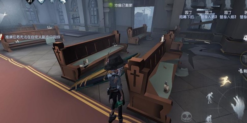 娱乐玩法中,园丁角色若被两名或以上玩家选择,屠夫常会携带失常技能,导致其修密码机和拆椅子能力受限,大幅拖延开机进度,且缺乏自保手段。幸运儿则为无特殊能力的普通角色,表现完全依赖开箱运气,整体效率偏低,同样容易延缓游戏节奏。