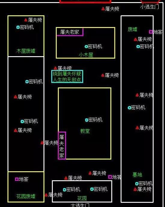 有短板自然就有长板,所谓长板是指两侧带窗户且墙体较长的结构。例如教堂正门左侧由板子与窗户形成的狭长区域,堪称溜屠夫的绝佳位置。在此处可无限周旋,令屠夫极为棘手,若无封窗或闪现手段,缺乏位移能力的屠夫几乎毫无胜算。