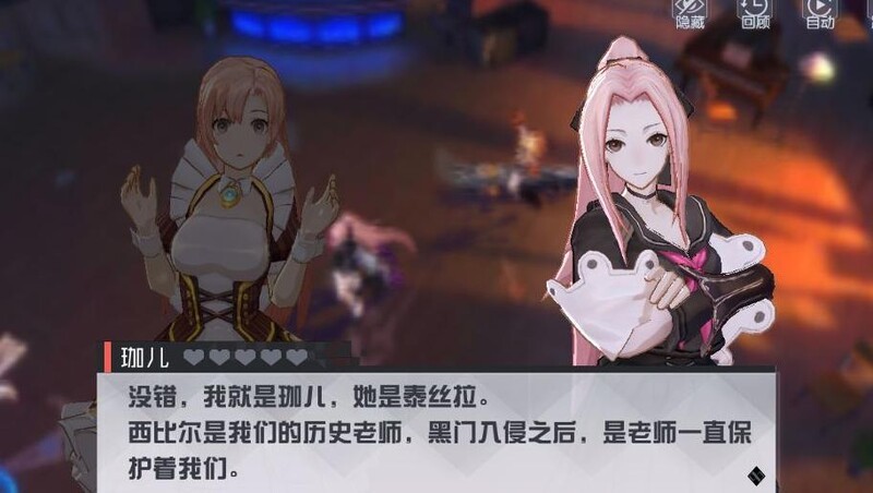 前行途中,玩家遇见了与。她们透露,是老师送出求救信并保护她们逃离险境,但老师为解除黑门独自深入黑雾。当时她们欲随行,却被老师以结界困住,直至结界消失才抵达此处。坚信老师遭遇不测,坚持前往营救,而强烈反对,双方争执不下,最终爆发冲突,激烈交手。