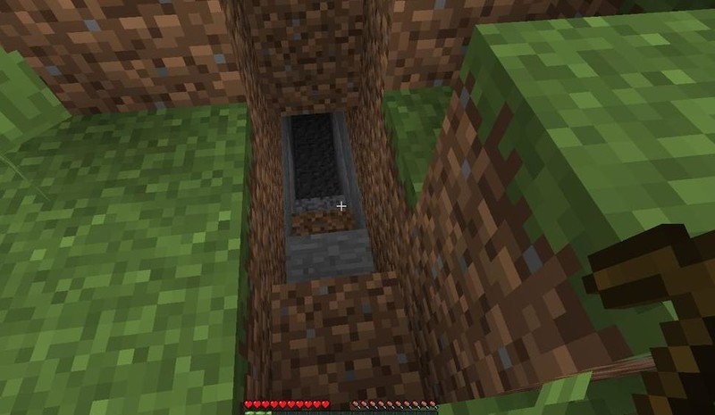 用工作台将木板拆成木棍,制作木镐后装备,选择地点逐层向下挖掘。