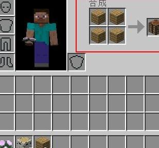 用左键拆下木板,将四块合成工作台。工作台极为重要,是制作多种物品的必备工具。