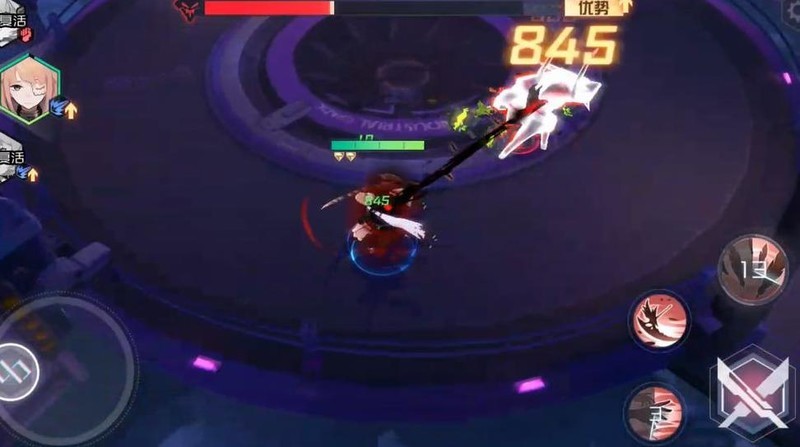 待敌人恢复后,立即替换角色,利用珈儿迅速接近并拔刀,紧接着释放一二技能,在炮台干扰下快速击杀泰拉丝。
