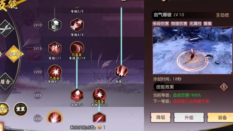 剑气涌动为抓取类技能,伤害偏低但冷却时间短,在PVP与PVE中均有良好表现。技能加点建议初期+1即可满足需求,后续若有富余技能点可再补强,实用性随等级提升逐步显现。
