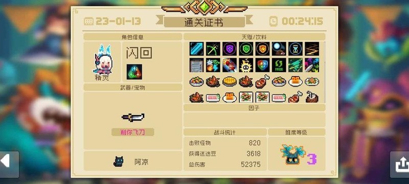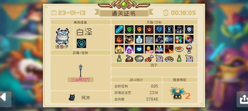 第一种玩法适用于尚未解锁三叉戟的阶段。开局尽量抽取远程类神器,尤其是飞刀,有助于顺利度过前期关卡并快速搜寻装备。常规操作是以主武器为主进行输出,若获得飞刀,可将其作为副武器使用。在前六七关中,即便专注于寻找理想主武器也无妨,整体推进非常顺畅。推荐选择带有元素伤害或散弹效果的武器:前者能触发多种异常状态,且岛屿内存在大量提升元素伤害的食物;后者则具备强大的范围清怪能力,大幅提高刷钱效率。食物搭配方面,优先考虑提升移速、远程伤害、元素伤害(根据所用武器调整)、生命值、护盾以及工资属性。天赋选择以实用为主,近期新增的金色天赋——濒死时瞬间回满血量并清屏——表现优异,可根据实际情况灵活选用。此流派缺点在于蓝耗偏高,容易因资源耗尽陷入困境,缺乏保命手段,需格外注意走位规避伤害,即便拥有冰冻效果也不能掉以轻心。