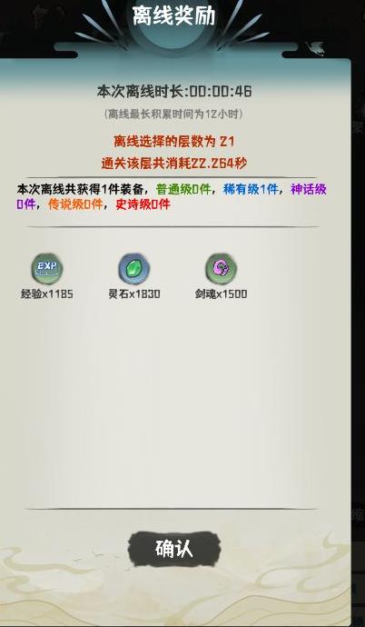 挂机时地图面板会记录灵石与经验收益,离线后系统将参照该数据发放相应奖励。材料类奖励则依据离线前所在地图层数进行结算,确保离线期间收益合理计算与发放。