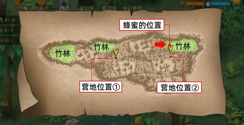 初期营地可设于地图左侧竹林或靠近采蜜点处。