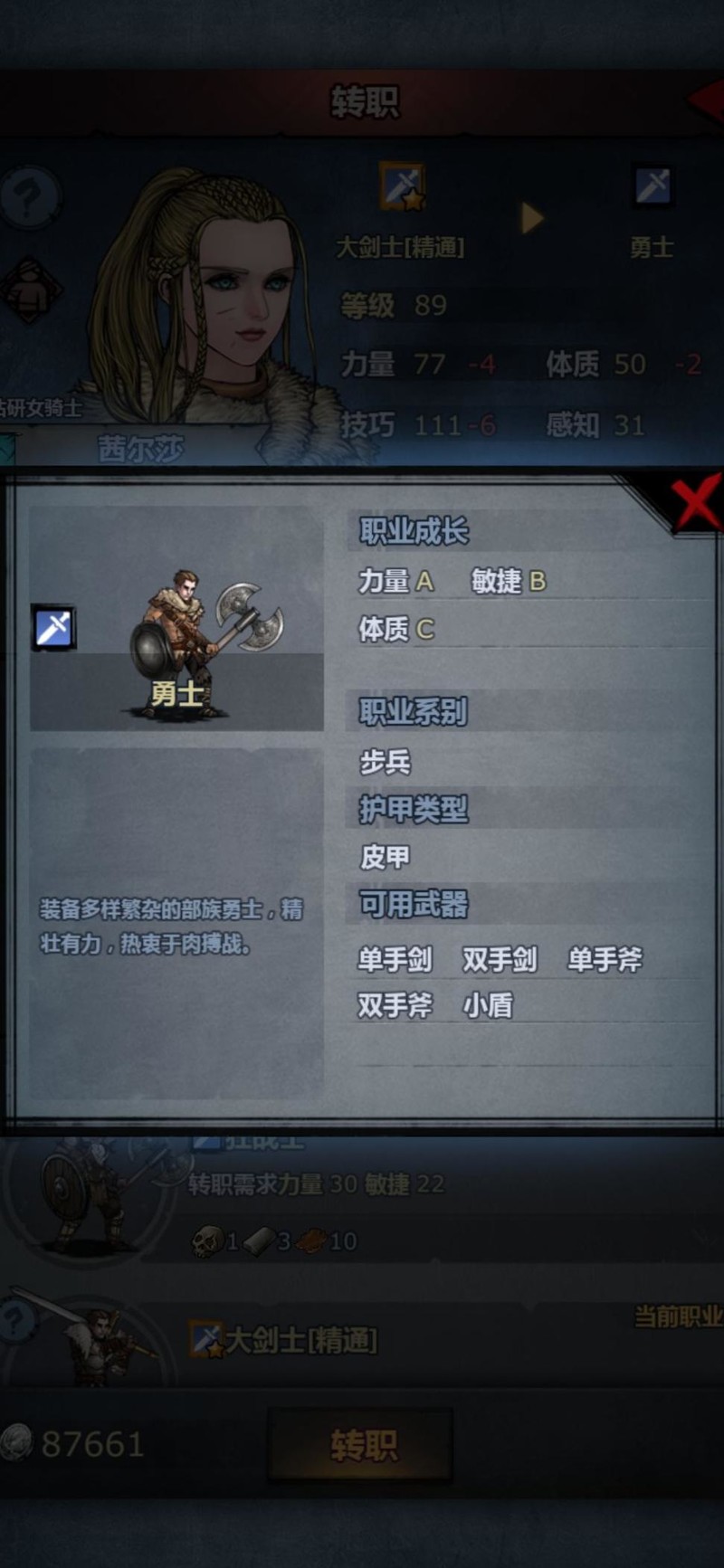 由于我主玩屠公主,前期跑商较多,资源有限,因此其他角色暂不进行三转。若资源紧张,建议先暂缓三转,可让角色下阵过渡,待资源充裕后再操作。例如赫斯罗普可转为铁甲,重骑兵则可进阶为重装骑士,合理规划更利于后期发展。