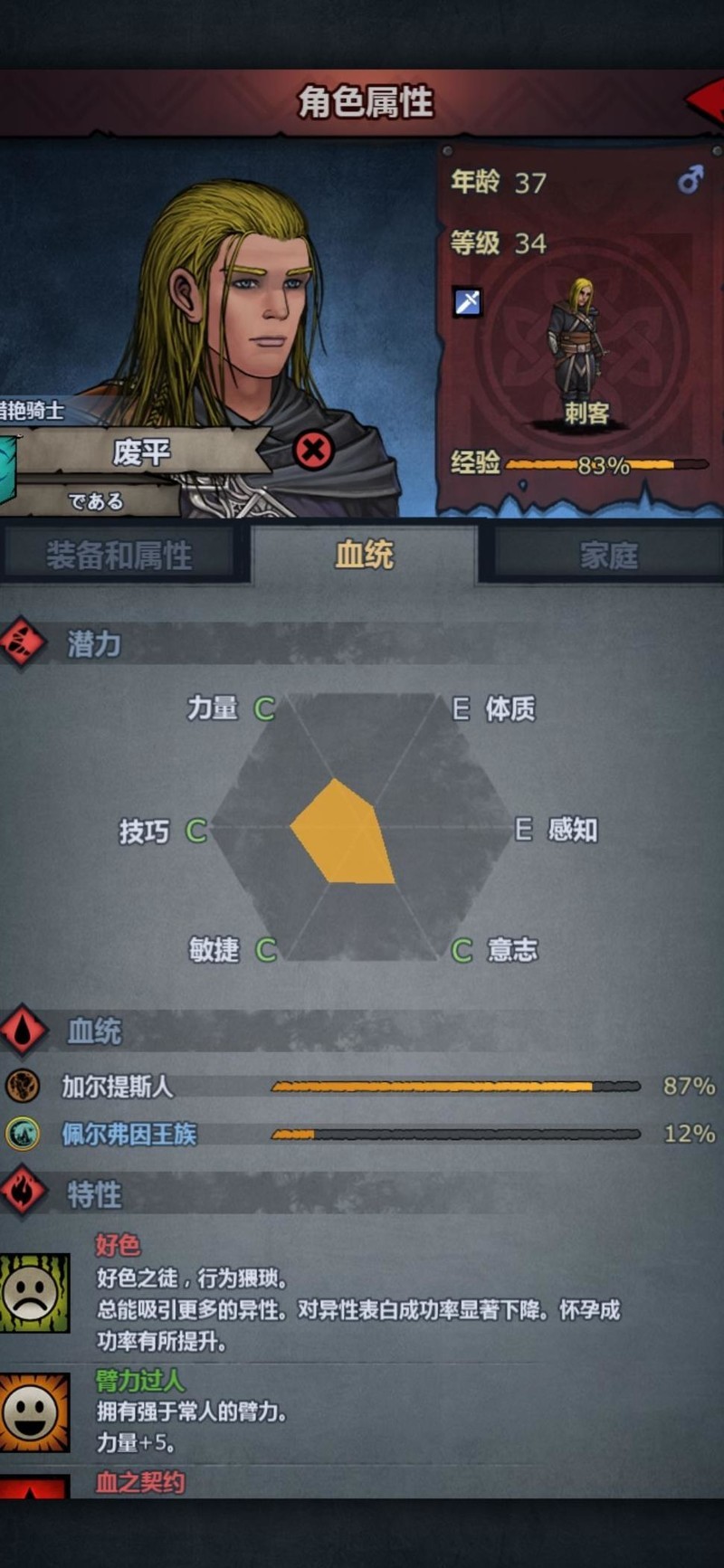 例如这套为全C级,若想作为传家宝,需确保其中两项属性比其他属性高出一倍以上,否则属性过于平均难以成型。我主练技巧与敏捷,后续转职刺客仍可继续培养技敏路线。由于刺客本身敏捷成长较高,最终成型效果所示。同理也适用于斥候职业,因我侧重技能伤害,故选择转为刺客进行培养。