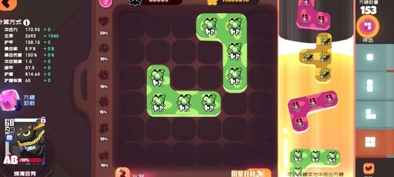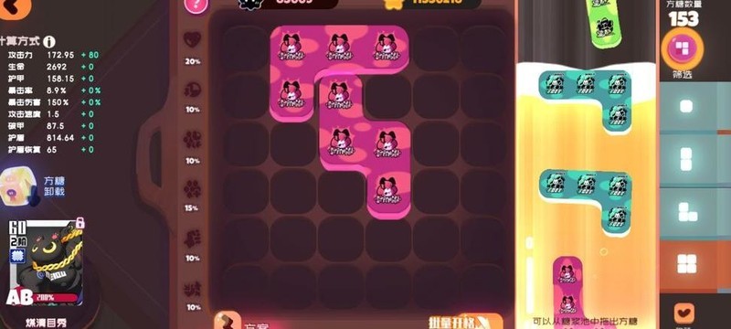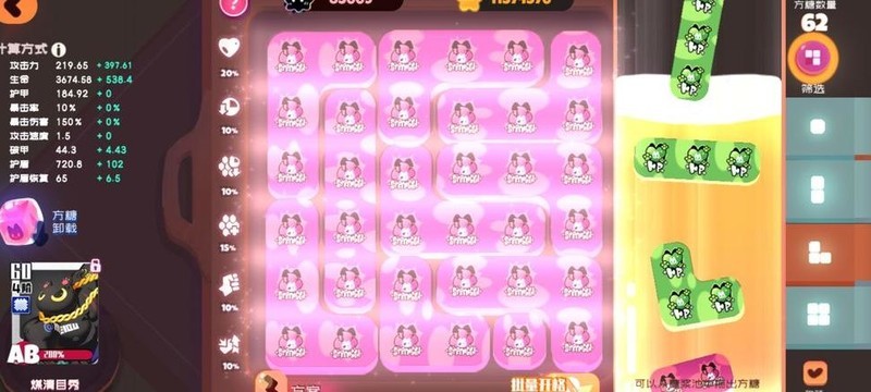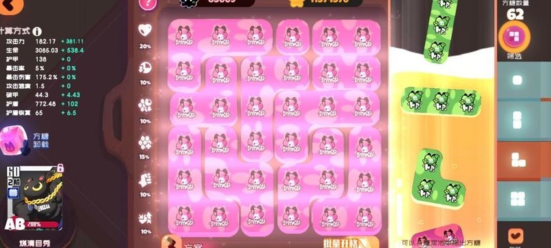 武器选择上没有特别限制,可根据个人喜好自由搭配,主要输出依靠宠物技能。宠物推荐使用三个小金人,或两个小金人搭配一个鸡块。方糖方面,建议将人物整体移速控制在5左右,避免速度差异过大,以便更灵活地躲避Boss技能。其余方糖可优先选择生命类以提升生存能力。对于尚未熟练掌握该玩法的玩家,建议搭配生命糖和攻击糖;若阵容中已包含鸡块和云,则只需配备生命糖即可。整套配置无需七星道具,平民玩家也能轻松组建,获取难度低,操作容错率较高。