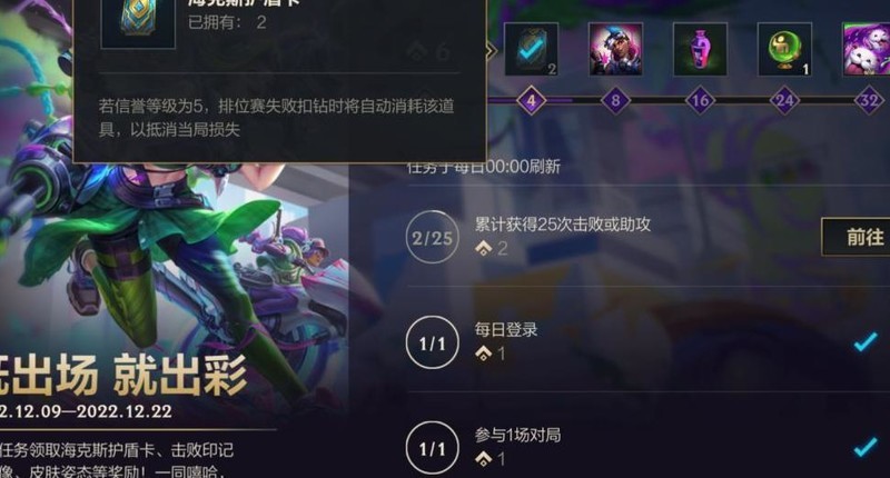 奖励包括:海克斯护盾卡两张、头像、击败印记及涂鸦小队姿态精选宝箱。