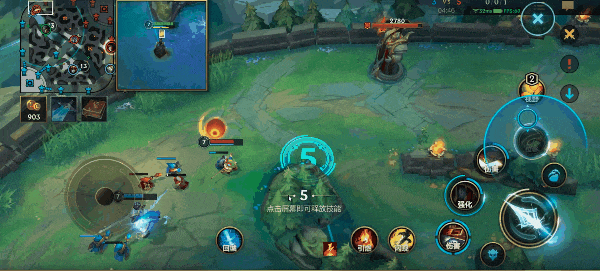 菲兹对线以发育为主,利用E技能和Q技能快速清线后游走。等到五级学会大招,精准命中敌人即可完成中路单杀。