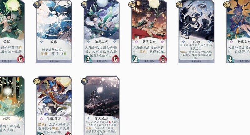 莹草是一位功能全面的式神,能有效提升卡组流畅度。她具备稳定的过牌能力,通过切换形态可提供治疗、增益或额外行动力,兼具解场与控制效果。然而由于无法直接回复生命值,且难以长期稳定输出单一资源,通常在阵容中担任次要辅助角色,为团队提供灵活支援。