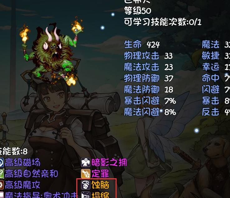 宠物建议选择具备蚀脑和塌缩技能的,若无蚀脑可接受,但塌缩必带。巴佛灭、巴尔、巴风特这三种宝宝均较易同时拥有这两个技能,出率较高。