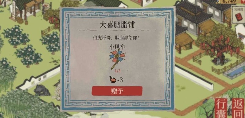 与唐伯虎同行,众人同往大喜胭脂铺选购胭脂。