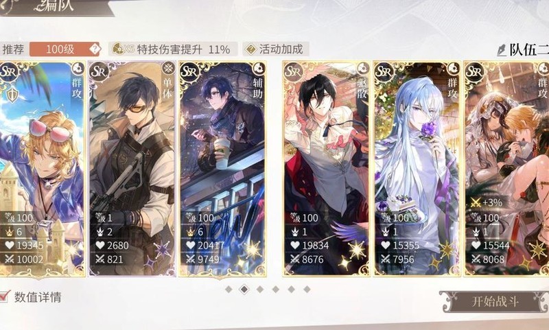 先选一张六星特典冰椰,建议攻击力过万,九千出头稍显不足。再搭配一张一级SR角色,多数人都有,其一技能可破除无敌状态。接着使用六星特典匣中角色,也可替换为其他六星群攻或单体输出。最关键的是往昔,必须在第三回合释放技能降低敌方防御。最后补一张任意角色凑齐五色即可,但前四人需搭配30至40速度加成的绘卷,确保行动顺序。