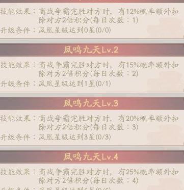 武则天的珍兽为凤凰,具备独特触发技能,每升一级均有详细说明。普通技能主要用于提升财力,无触发效果,此处不再逐一赘述。