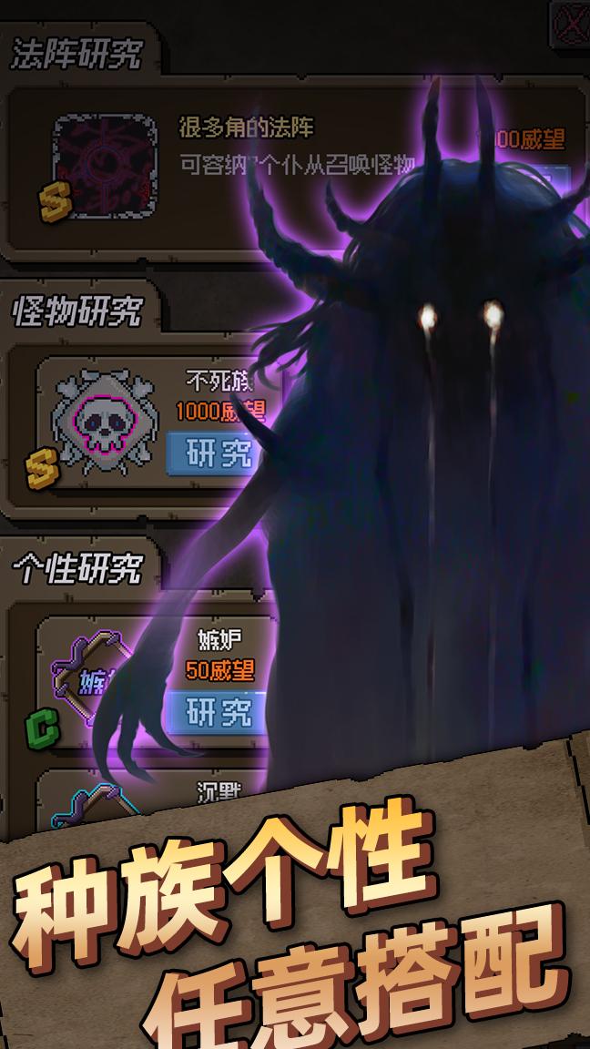 游戏的核心玩法围绕着召唤怪物、破坏世界并获取收益展开。玩家需要雇佣主祭,通过他们来设计和强化怪物,进而对世界进行破坏,最终根据破坏程度获得报酬。屏幕左下角设有商店,出售各类可提升主祭属性的道具,这些道具不会增加主祭的薪资成本,因此是性价比极高的投资选择。