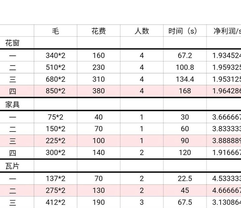 利润率最高的项目已用红标注明,可在完成六项基础建筑后优先增建收益最大的设施。例如便民商栈中的药铺第三档收益突出,可适量多建。画室虽位列第一档,但类似刷水井类玩法,耗时耗力,不推荐采用。该策略较适用于苏州这类以快速积累资金为主的布局方式,能有效提升整体收益效率。
