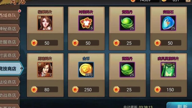 竞技商店可换取觉醒丹,觉醒商店则用觉醒丹兑换所需残卷。