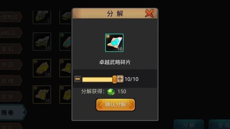 玩家可将残卷碎片合成残卷后分解为觉醒丹,作为额外资源获取途径。建议优先选择高品质残卷进行分解,因其等级越高,分解所得觉醒丹数量越多,资源效益更佳。