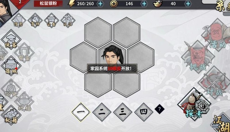 角色达到10级后解锁家园系统,剧情设定为小师妹寻得一处隐秘之地,成为玩家的安身之所。