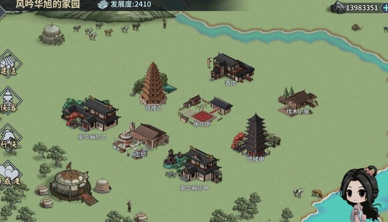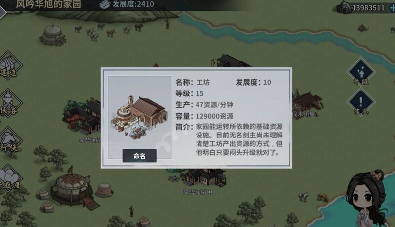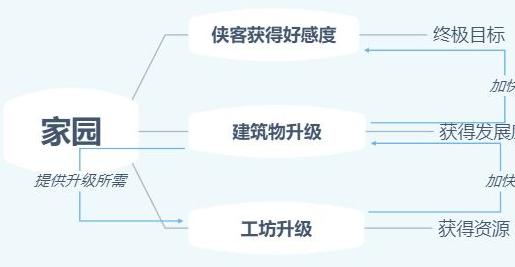 家园中的侠客居住在各类建筑里,因此建造和升级建筑至关重要。建筑升级不仅能加快侠客好感度的积累,还能提升整体发展度。而发展度是工坊升级的前提条件,工坊升级后可提高资源产出效率,反过来又支持更多建筑的建设与升级。资源、建筑、工坊与发展度环环相扣,形成一个相互依赖的系统。虽然看似复杂,但只要理清其中逻辑关系,整个流程便会清晰明了,一目了然。