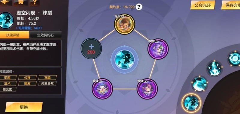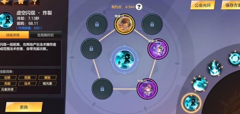 技能选定、套装重置后便开始搭配契约石,我的配置如下(闪现附带冷却缩减,以防出现冷却真空期,尽早刷新更稳妥)。