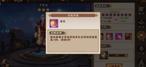 四星天赋(速死):单位受地面毒水伤害后,5秒内所受伤害提升15%。