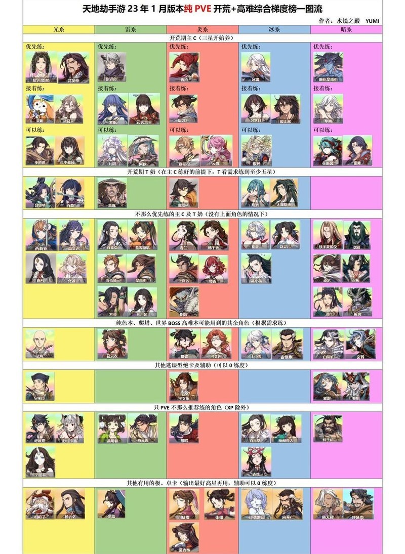 临近春节,不少新人加入,趁着空闲更新榜单。本次仍以整体表现为主,覆盖多数常见情况。后续将逐步补充部分角色的详细解析,说明其排名依据及变动原因。